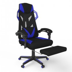 oparcie tapicerowane wentylowaną siatką, dopasowującą się do pleców użytkownika, regulowana poduszka lędźwiowa, tapicerowany zagłówek zapewniający podparcie dla odcianka szyjnego kręgosłupa, mechanizm 2-dźwigniowy umożliwiający odchylenie do 145 stopni, miekkie, tapicerowane, wygodne podłokietniki, możliwość bujania się i blokady fotela, stelaż nylonowy, kółka do twardych powierzchni wysuwany, tapicerowany podnóżek, Wymiary: W65*D61.5*H113-123cm