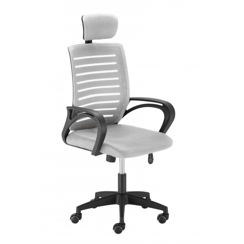 orarcie tapicerowane ergonomiczną siatką, siedzisko tapicerowane tkaniną 3D MESH, regulowany tapiceroweany zagłówek, mechanizm kołysania się TILT pozwalający na wychylenia oparcia, regulacjęsiły wychylenia i blokadę w pozycji do pracy, kółka do powerzchni twardych,53*54*(110-120)cm