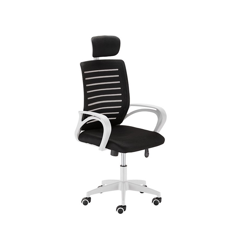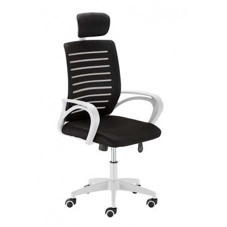 orarcie tapicerowane ergonomiczną siatką, szkielet fotela w kolorze BIAŁYM, siedzisko tapicerowane tkaniną 3D MESH, regulowany tapiceroweany zagłówek, mechanizm kołysania się TILT pozwalający na wychylenia oparcia, regulacjęsiły wychylenia i blokadę w pozycji do pracy, kółka do powerzchni twardych,53*54*(110-120)cm