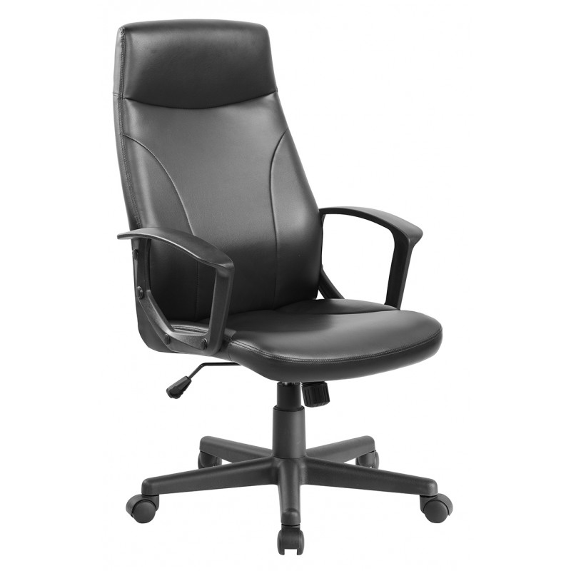 tapicerowany ekoskórą, podłokietniki z tworzywa, wyposażowy w mechanizm TILT umożliwiający kołysanie się, blokadę wpozycji do pracy i regulację siły wychylenia, podstawa nylonowa z kółkami do powierzchni twardych z oponkami,W62*D62*H105-117CM