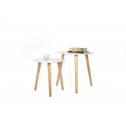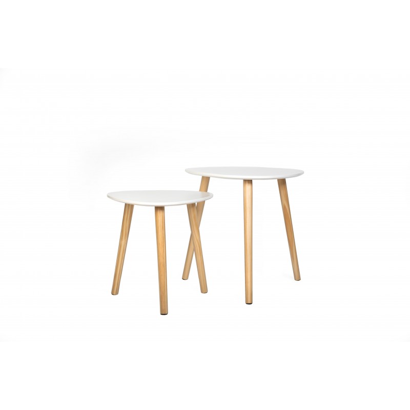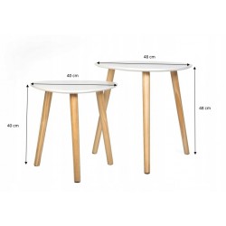 lbaty wykonane z płyty MDF, nogi z drewna sosnowego, wymiary: stolik duży 48x48x48cm, stolik mały: 40x40x40 cm kolor blatu BIAŁY