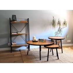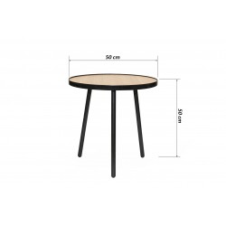blat wykonany z płyty MDF pokrytej melaminą, stelaż metalowy w kolorze czarnym, wymiary: FI50x50 cm