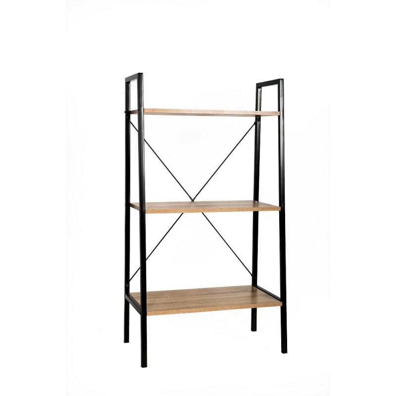 stelaż metalowy, lakierowany na kolor czarny, półki z MDF pokryte PVC o strukturze drewna wymiary: 60X32X110 cm