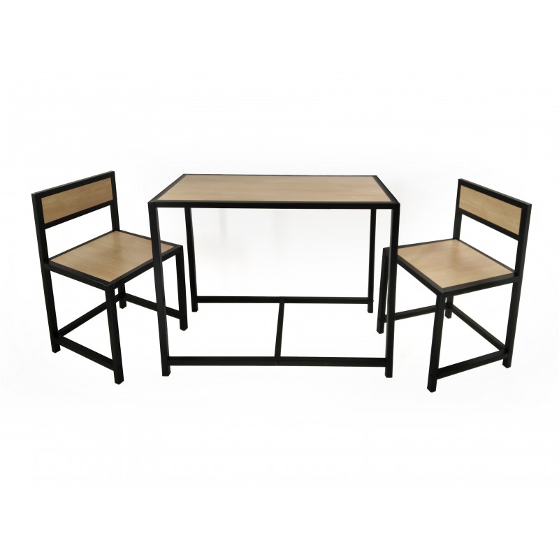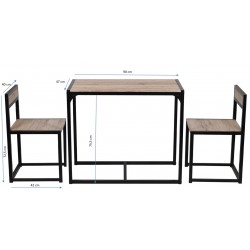 rama metalowa, lakierowana na kolor czarny, blat oraz siedziska z płyty MDF pokrytej PVC w kolorze mitującym strukturę drewna wymiary: TABLE: 47x90x75,5 cm,