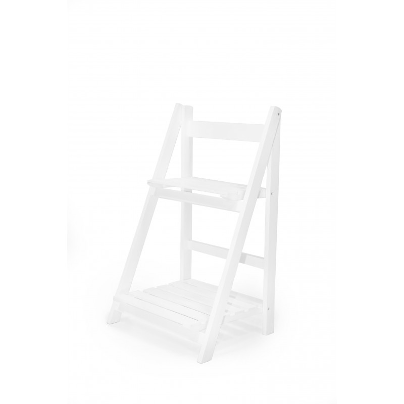 wykonana z drewna paulownia , lakierowana na kolor biały, styl rustykalny posiada 2 półki, wymiary: L41*W32*H65,5 cm