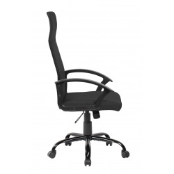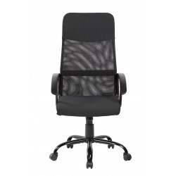 oparcie tapicerowane wentylowaną siatką, dopasowującą się do pleców użytkownika, siedzisko i oparcie tapicerowane imitacją skóry, nylonowe podłokietniki, podstawa metalowa, lakierowana na kolor czany, kółka do powierzchni twardych nierysujące podłogi, wyposażony w mechanizm kołysania się TILT pozwalający na blokadę oparcia w pozycji do pracy, regulację siły wychylenia oparcia
