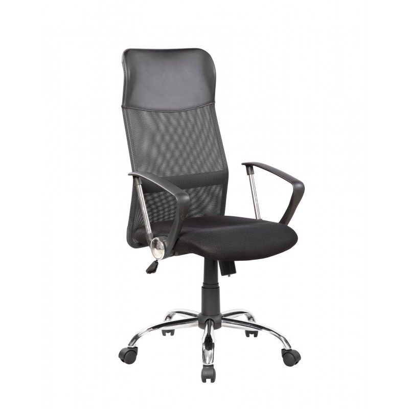 tapicerowany siatką oraz tkaniną 3D mesh na siedzisku, podłokienitki z metalowym elementem chromowanym, mechanizm kołysania się TILT, pozwalający na blokadę fotela w pozycji do pracy, regulację siły wychylenia oparcia, kółka do powierzchni twardych oponkami