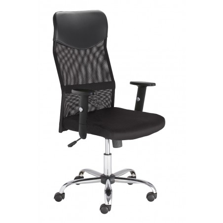 tapicerowany siatką oraz tkaniną 3D mesh na siedzisku, podłokienitki z regulacją wysokości, mechanizm kołysania się TILT, pozwalający na blokadę fotela w pozycji do pracy, regulację siły wychylenia oparcia, kółka do powierzchni twardych oponkami