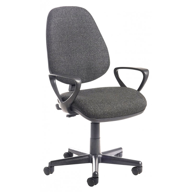 fotel do biurowego stanowiska pracy odpowiedni do wszystkich środowisk — od call center po domowe biuro. Idealny do całodziennych wymagań na biurowym stanowisku pracy, wyposażone w mechanizm 2-dźwigniowy pozwalający na regulację kąta pochylenia oparcia, wysokości oparcia oraz wysokości siedziska dzięki czemu idealnie dopasowuje się do potrzeb użytkownika; siedzisko i oparcie tapicerowane tkaniną, kółka do powierzchni dywanowych; fotel rekomendowany do 8 godzinnej pracy biurowej Wymiary siedziska: (wys. X szer. x gł.) 490-590 x 480 x 450 mm.