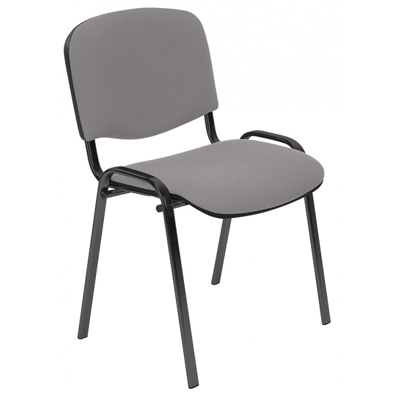 rama metalowa lakierowana na kolor czarny, siedzisko i oparcie tapicerowane pianką tapicerską oraz tkaniną, szkielet siedziska ze sklejki, stopki nierysujące podłogi, możliwość ustawiania w stos do 10 szt.